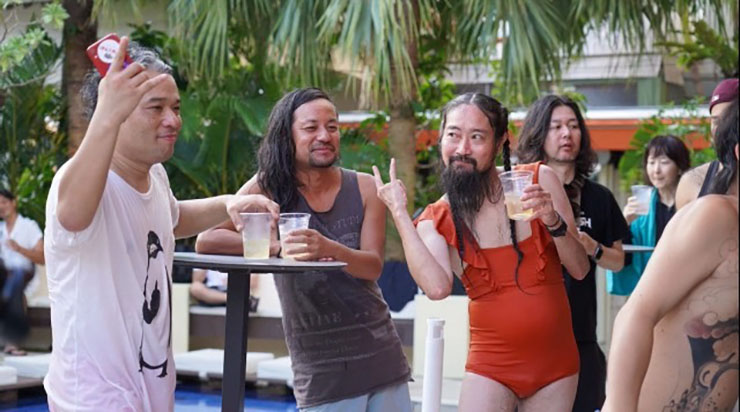 (Kihara) 初めてあったのは沖縄です。僕の高校のお友達が、沖縄のど真ん中にある「熱血社交場クラブ」の副店長をしていて沖縄に来てーってご連絡があり、現場に行くと RYUKYUDISKO さんが待ち構えてました、それから仲良くさせてもらってます。